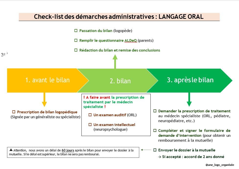 2) Le bilan logopédique + questionnaire ALDEQ (chez le/la logopède que vous consultez)